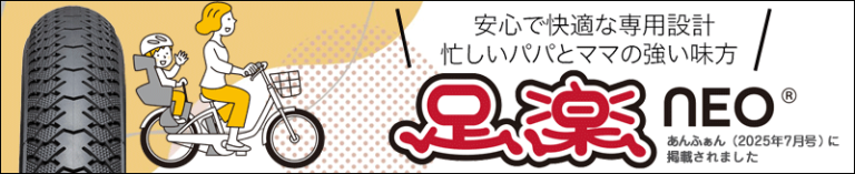 井上ゴム工業株式会社(iRC TIRE)は、長年多くのユーザーにご愛顧いただいている電動アシスト自転車専用タイヤ「足楽」及び「足楽プロ」を、現代の多様なニーズに合わせてアップデートした次世代モデル「足楽neo(あしらく ネオ)」「足楽neo BUSINEES(あしらく ネオ ビジネス)」として発売を開始いたしました。